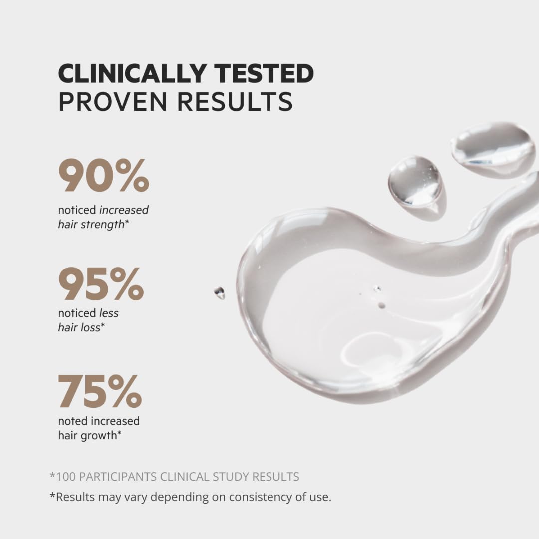 Answer 1: The serum features a fast-absorbing formula that penetrates the scalp to deliver essential nutrients directly to the hair follicles. Its clinically-researched ingredients, including Nanoxidil, caffeine, biotin, peptides, and antioxidants, work together to stimulate hair growth and enhance hair vitality over time.